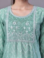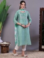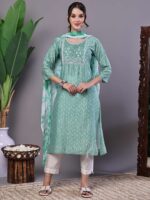 Women’s Mint Green Chanderi Embroidered Kurta Set with Dupatta Suit Sets