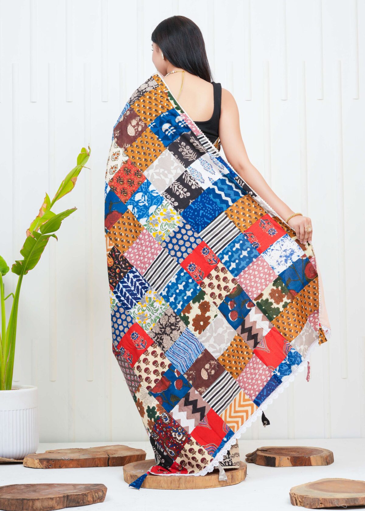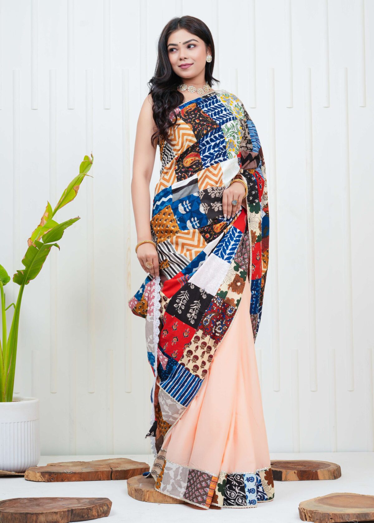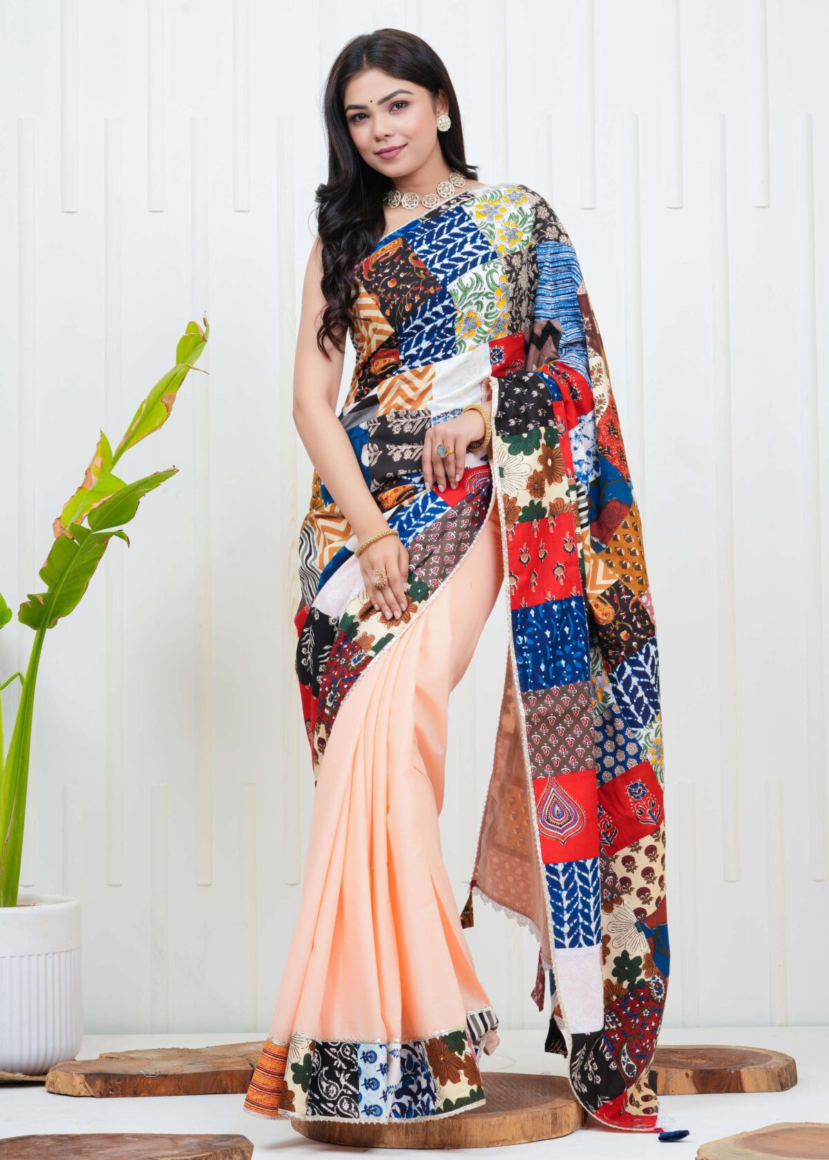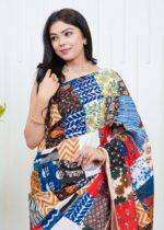 Women’s Multicolor Patchwork Printed Saree with Blouse Piece Ethnic Party Casual Wear