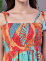 Level up your style with this trend-setting dress. Its vibrant abstract print and distinctive high-low handkerchief hemline create an eye-catching look. The tie-up shoulder straps ensure a comfortable and adjustable fit. Whether for daytime casual events or evening gatherings, this dress is the perfect choice for effortless flair.