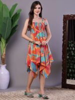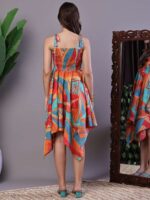 Women’s Multicolor Printed Cotton Handkerchief Hem Dress Midi Dresses