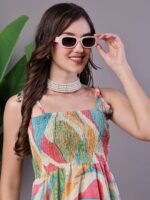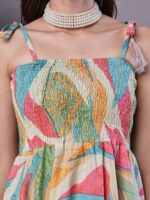Level up your style with this trend-setting dress. Its vibrant abstract print and distinctive high-low handkerchief hemline create an eye-catching look. The tie-up shoulder straps ensure a comfortable and adjustable fit. Whether for daytime casual events or evening gatherings, this dress is the perfect choice for effortless flair.