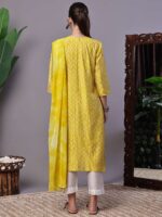 Women’s Mustard Yellow Chevron Print Chanderi Kurta Set with Mirror Work Suit Sets