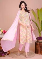 Ethnic wardrobe with this beautifully designed cotton straight kurti set with pant and dupatta. Crafted from breathable cotton fabric, this outfit ensures all-day comfort while giving you a graceful and stylish look. The straight kurti is adorned with intricate prints, paired with a matching pant and a lightweight dupatta that adds elegance to the ensemble. Perfect for casual outings, festive occasions, or office wear, this cotton kurti set offers both comfort and sophistication.