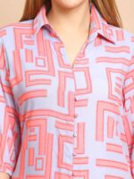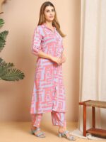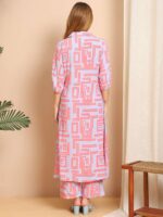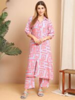 Women’s Pure Cotton Printed Collared Top and Pant Co-ord Set (Pink Gr)