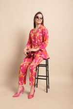 Women’s Pure Cotton Printed Co-ord Set, featuring a smart collared top and matching pants. Crafted from soft, breathable cotton with trendy prints, this coordinated outfit blends comfort with style ? perfect for casual outings, travel, or laid-back weekends. The collared design adds a touch of structure, making it ideal for both lounge and on-the-go looks.