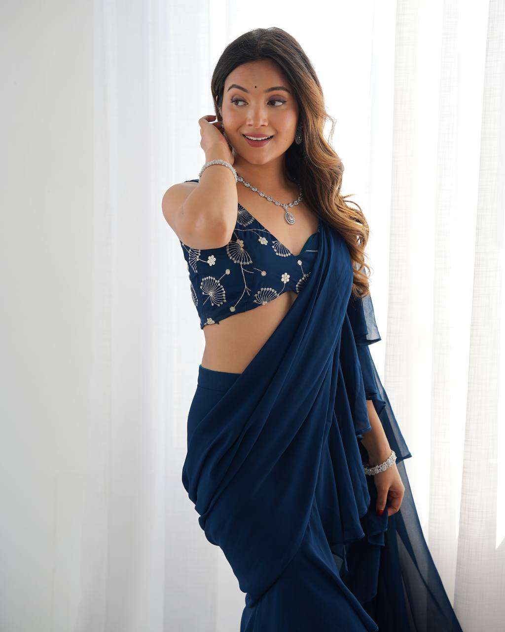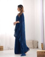 Women’s Pure Romansilk Chanderi Embroidered Crop Top With Ruffled Sharara & Draped Dupatta Set