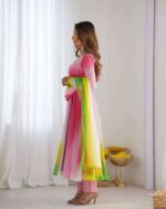 Women’s Pure Romansilk Chanderi Tie-Dye Anarkali Kurti Pant With Dupatta Set