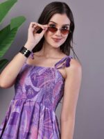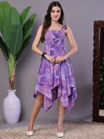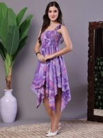 Women’s Purple Printed Cotton Handkerchief Hem Midi Dress