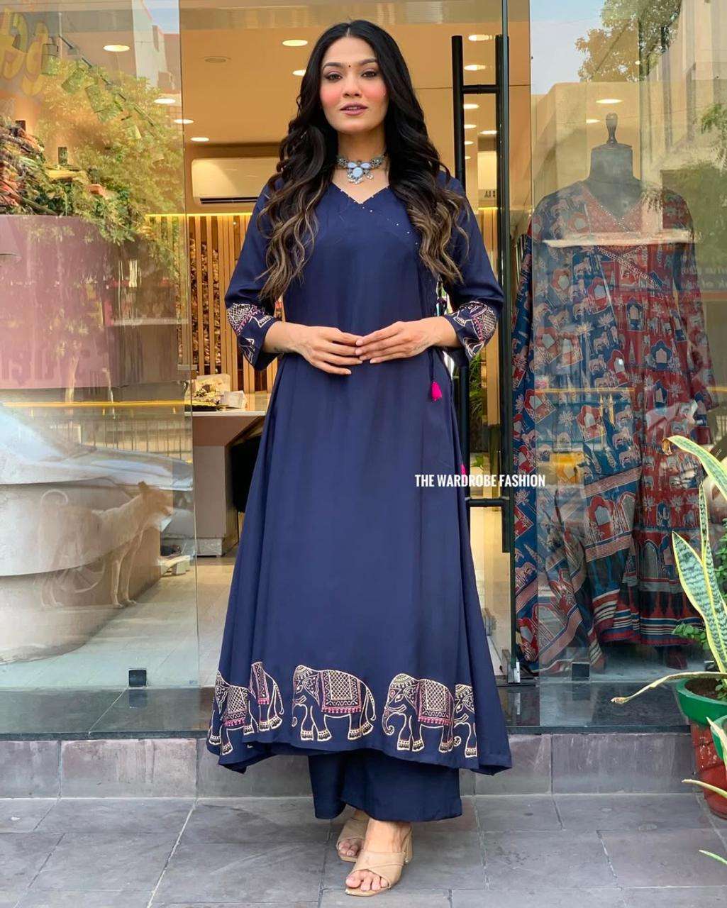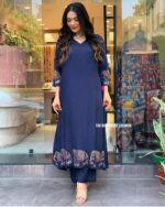 Women’s Rayon Embroidered Straight Kurti With Pant Set