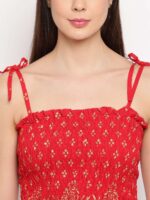 Women’s Rayon Floral Printed Casual Summer Style Tie Shoulder Straps Free Size Tank Top ( Red Gold Pattern)