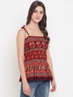 Women’s Rayon Printed Casual Summer Style Tie Shoulder Straps Free Size Tank Top ( Multi2)