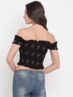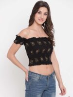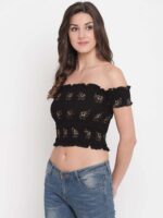 Women’s Rayon Printed Off-Shoulder Smocked Crop Top Short Sleeve Casual Styles Tank Top (FREE SIZE) Multi13