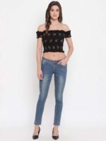 Make a bold statement with this stunning off-shoulder crop top. The smocked fabric creates an elegant textured pattern with delicate detailing throughout. Its stretchy, shirred design ensures a comfortable and flattering fit while the ruffled trim adds a feminine touch. The off-shoulder neckline with short sleeves creates a romantic silhouette perfect for casual outings or dressy occasions. The cropped length pairs beautifully with high-waisted jeans, skirts, or shorts. The vibrant colour makes it an eye-catching piece for your wardrobe. The elasticated top and bottom hems provide secure wearing comfort. This versatile top can be dressed up or down depending on the occasion, making it a must-have fashion staple for the modern wardrobe. The lightweight fabric makes it ideal for warm weather, while the fitted silhouette flatters various body types.