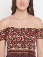 Women’s Rayon Printed Off-Shoulder Smocked Crop Top Short Sleeve Casual Styles Tank Top (FREE SIZE) Multi3