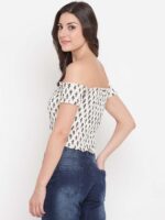 Women’s Rayon Printed Off-Shoulder Smocked Crop Top Short Sleeve Casual Styles Tank Top (FREE SIZE) Multi36