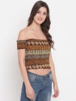 Women’s Rayon Printed Off-Shoulder Smocked Crop Top Short Sleeve Casual Styles Tank Top (FREE SIZE) Multi5