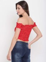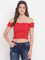Women’s Rayon Printed Off-Shoulder Smocked Crop Top Short Sleeve Casual Styles Tank Top (FREE SIZE) Multi9