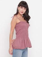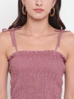 Women’s Rayon Solid Casual Summer Style Tie Shoulder Straps Free Size Tank Top (Onion)
