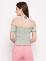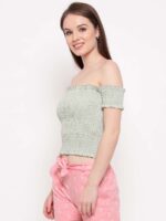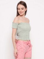 Women’s Rayon Solid Off-Shoulder Smocked Crop Top Short Sleeve Casual Styles Tank Top (FREE SIZE) Multi21