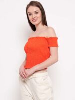 Women’s Rayon Solid Off-Shoulder Smocked Crop Top Short Sleeve Casual Styles Tank Top (FREE SIZE) Multi25