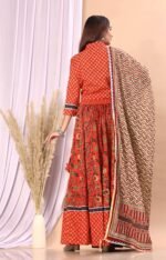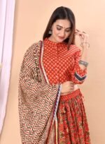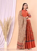 Women’s Red Cotton Printed Lehenga Choli Dupatta Set