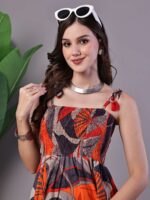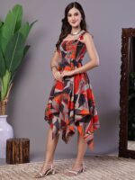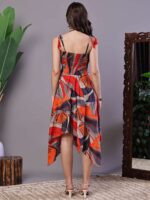 Women’s Rust & Grey Abstract Print Cotton Handkerchief Hem Dress Midi Dresses