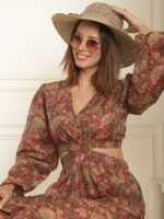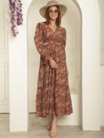 Women’s Silk Maxi Dress, designed with a stunning floral print and graceful long sleeves. The deep V-neckline adds a sophisticated touch, while the flowing silk fabric offers luxurious comfort. Perfect for evening events, parties, weddings, and other special occasions, this dress blends timeless beauty with modern charm.
