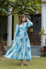 Women’s Silk Maxi Dress, designed with a stunning floral print and graceful long sleeves. The deep V-neckline adds a sophisticated touch, while the flowing silk fabric offers luxurious comfort. Perfect for evening events, parties, weddings, and other special occasions, this dress blends timeless beauty with modern charm.