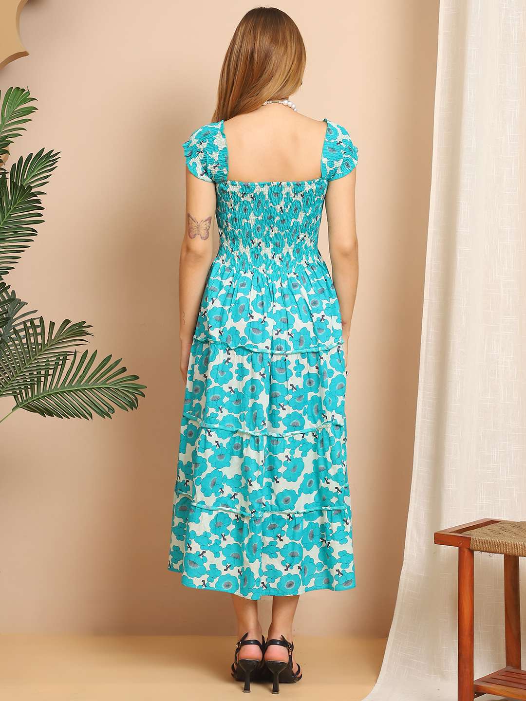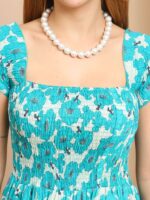 Women’s Viscos Rayon Printed Off Shoulder Midi Dress For Summer And Casual Wear (Blue Floral)