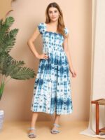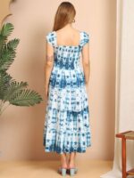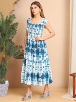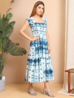 Women’s Viscos Rayon Printed Off Shoulder Midi Dress For Summer And Casual Wear (Blue Td)