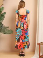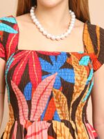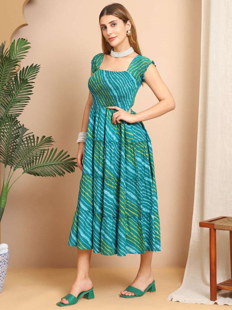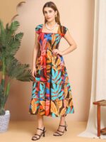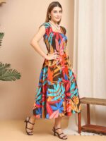 Women’s Viscos Rayon Printed Off Shoulder Midi Dress For Summer And Casual Wear (Multti Color1)