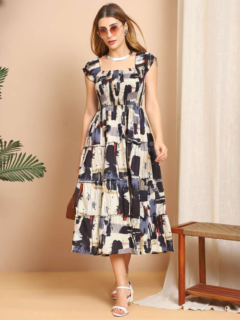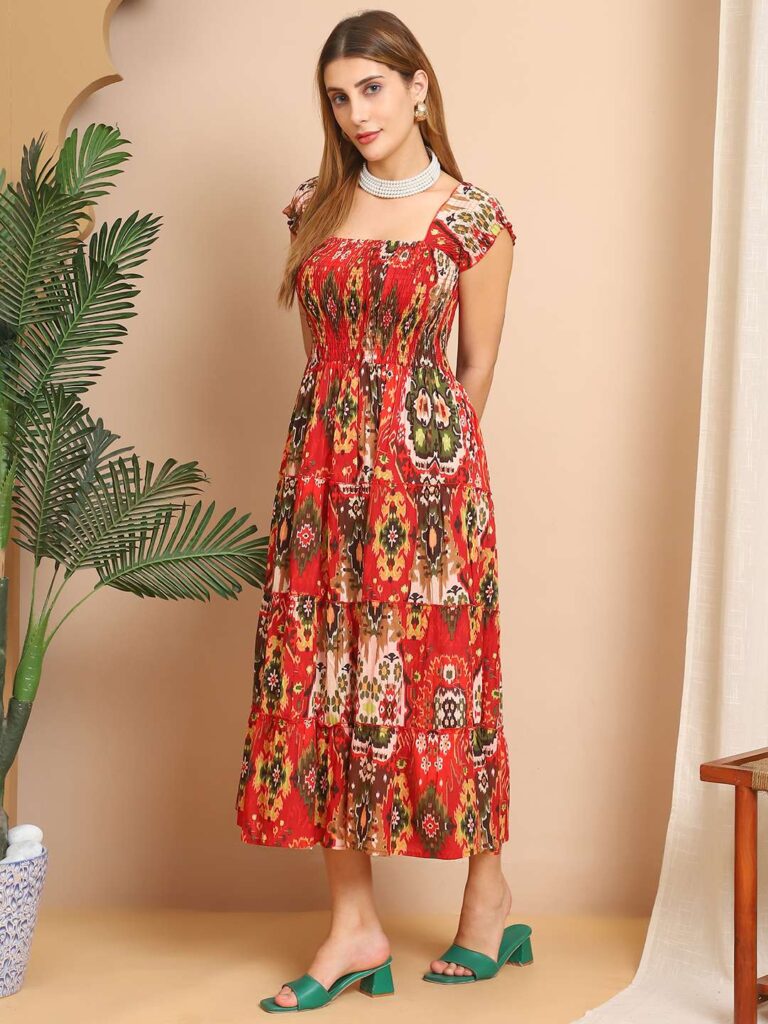Women’s Viscose Rayon Floral Printed Off-Shoulder Midi Dress, specially designed for summer and casual wear. Crafted from soft and breathable rayon fabric, this dress features a flattering off-shoulder neckline, elegant floral print, and a comfortable midi-length silhouette. Perfect for brunches, vacations, beach outings, or everyday wear.