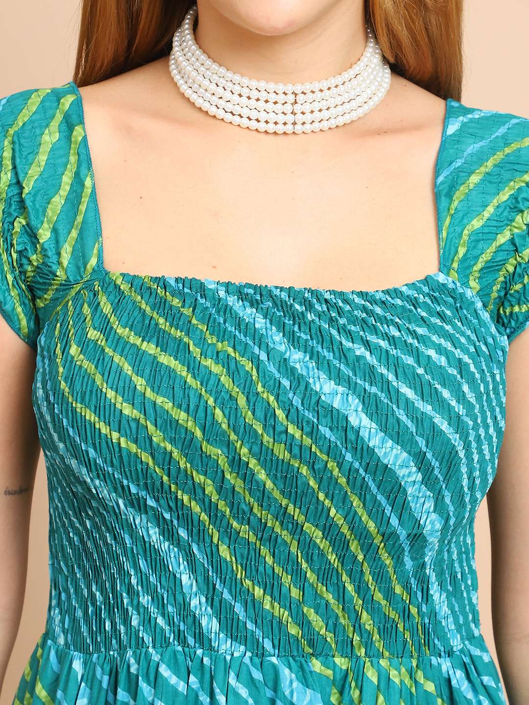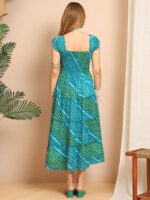 Women’s Viscos Rayon Printed Off Shoulder Midi Dress For Summer And Casual Wear (Teal Blue)