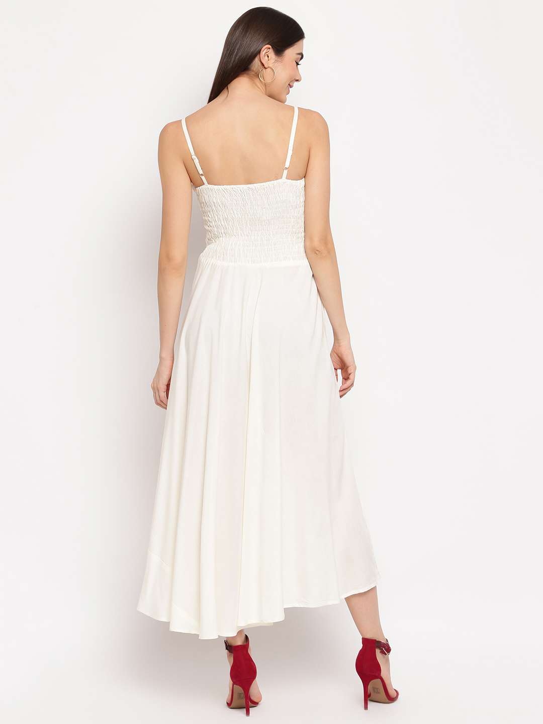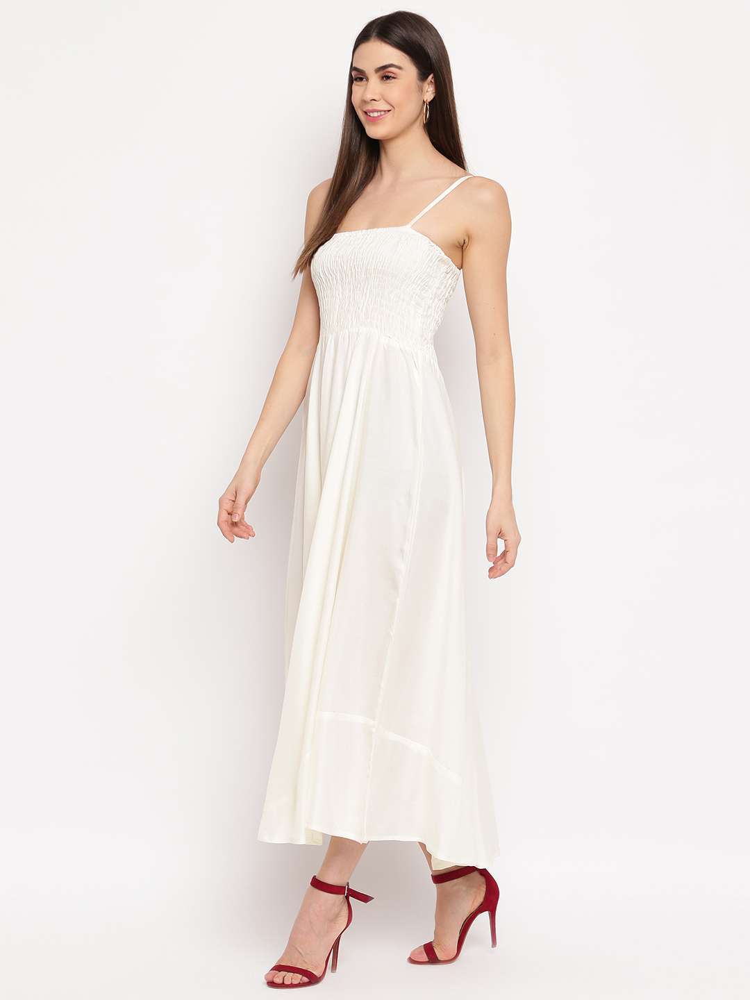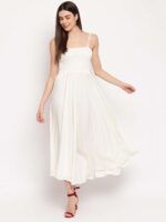 Women’s Viscose Rayon Solid Shoulder Straps Sleeveless Flared Gown Drees (Cream)