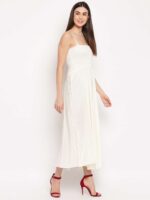 Women’s Viscose Rayon Sleeveless Flared Gown Dress in a timeless cream shade. Made from soft and flowy viscose rayon, this gown features adjustable shoulder straps, a flattering sleeveless design, and a beautifully flared hem that moves with grace. Whether you’re attending a daytime function, brunch, or an evening out, this dress offers both comfort and charm with minimal effort.