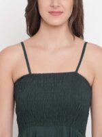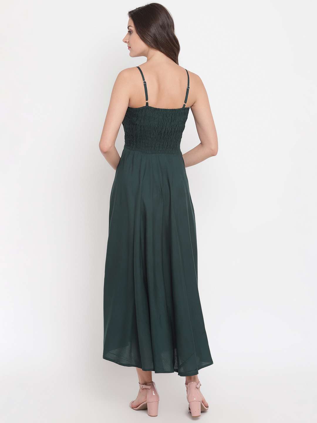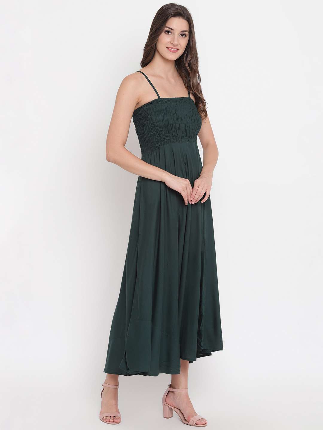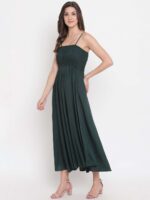 Women’s Viscose Rayon Solid Shoulder Straps Sleeveless Flared Gown Drees (Green1)