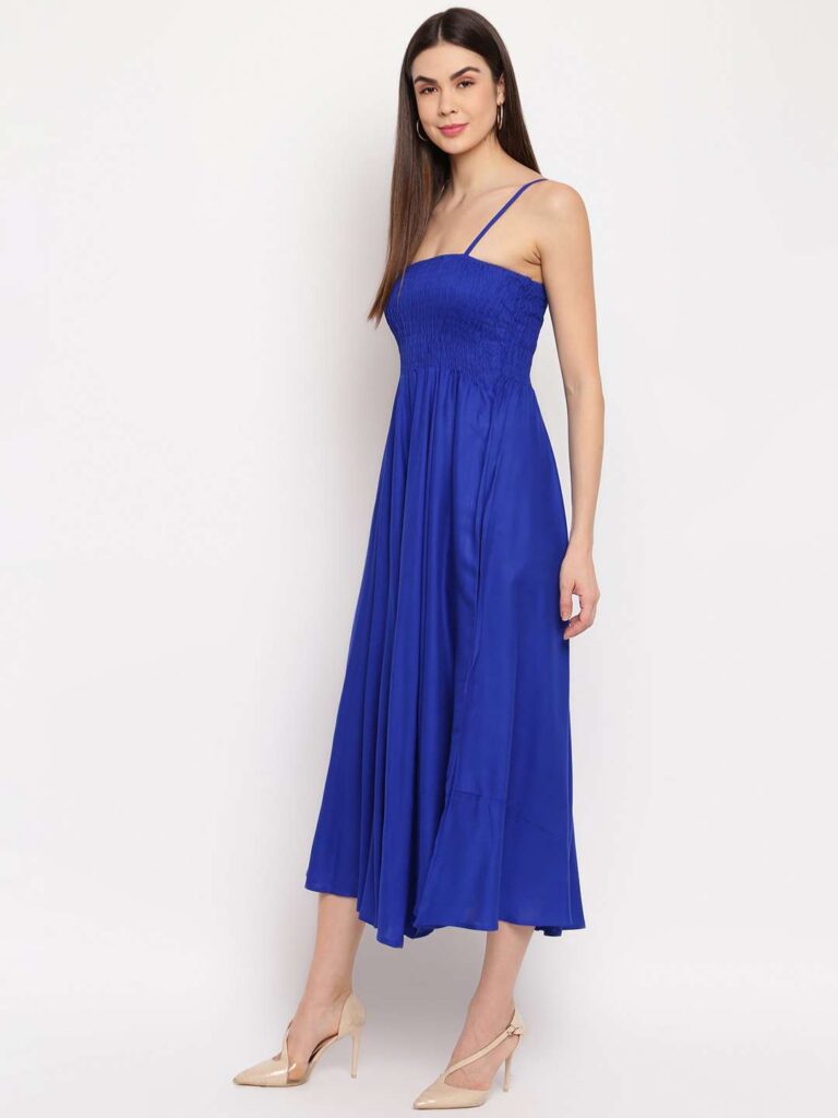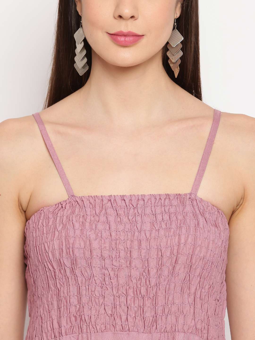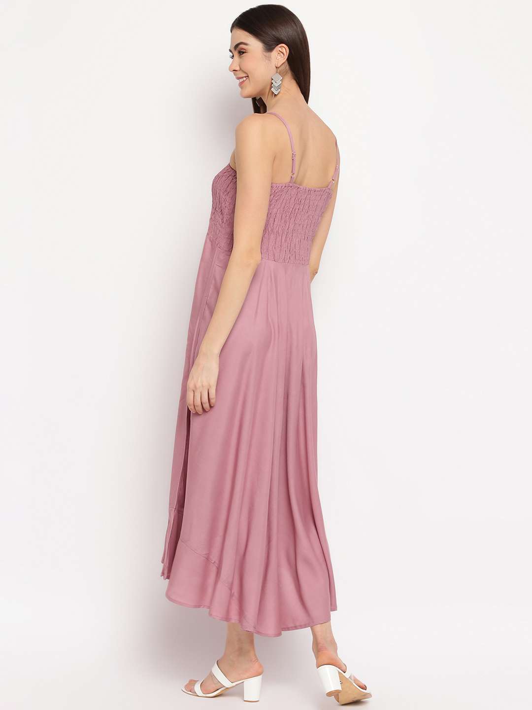 Women’s Viscose Rayon Solid Shoulder Straps Sleeveless Flared Gown Drees (MAUVE)