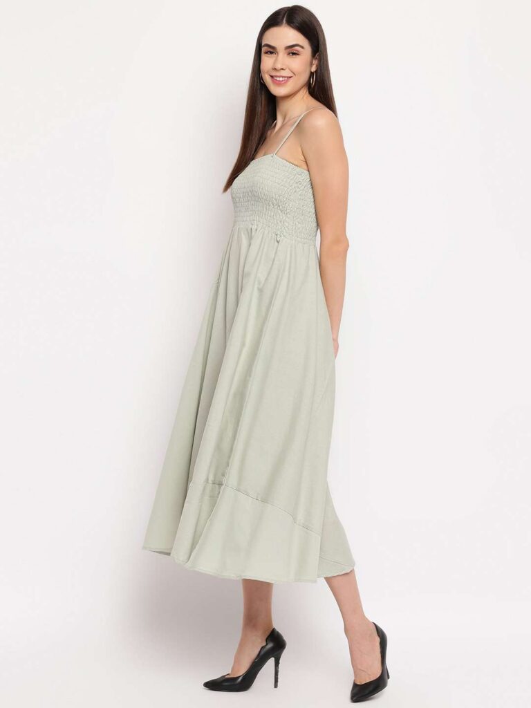 Women’s Viscose Rayon Sleeveless Flared Gown Dress in a timeless cream shade. Made from soft and flowy viscose rayon, this gown features adjustable shoulder straps, a flattering sleeveless design, and a beautifully flared hem that moves with grace. Whether you’re attending a daytime function, brunch, or an evening out, this dress offers both comfort and charm with minimal effort.