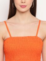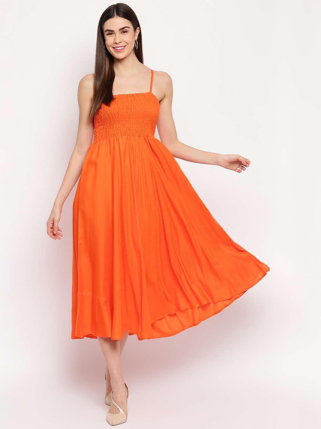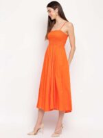 Women’s Viscose Rayon Solid Shoulder Straps Sleeveless Flared Gown Drees (Orange)