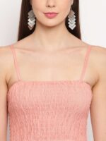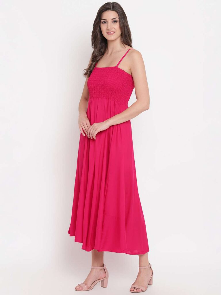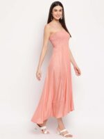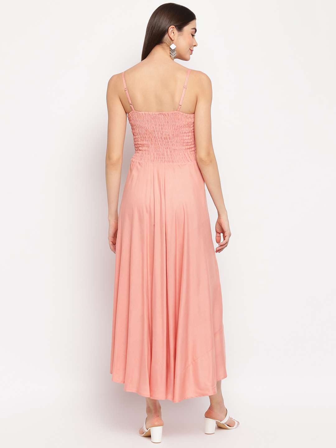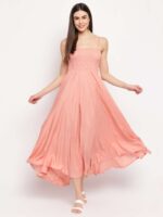 Women’s Viscose Rayon Solid Shoulder Straps Sleeveless Flared Gown Drees (Peach)