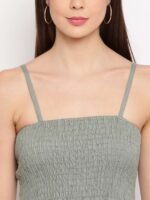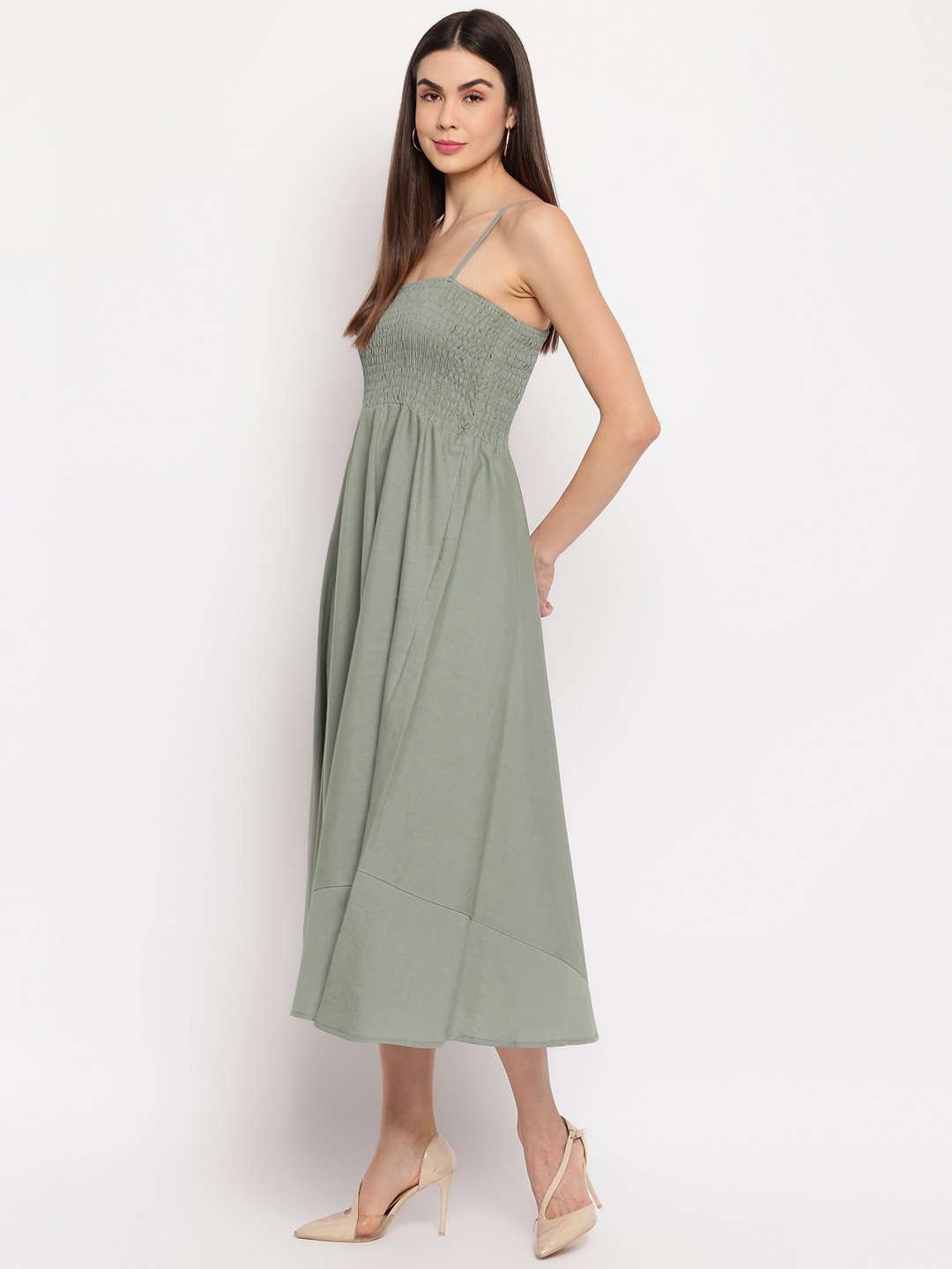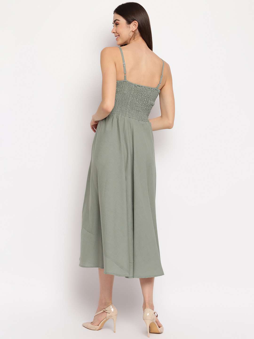 Women’s Viscose Rayon Solid Shoulder Straps Sleeveless Flared Gown Drees (Pista)