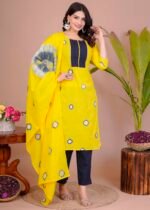 Ethnic wardrobe with this beautifully designed cotton straight kurti set with pant and dupatta. Crafted from breathable cotton fabric, this outfit ensures all-day comfort while giving you a graceful and stylish look. The straight kurti is adorned with intricate prints, paired with a matching pant and a lightweight dupatta that adds elegance to the ensemble. Perfect for casual outings, festive occasions, or office wear, this cotton kurti set offers both comfort and sophistication.