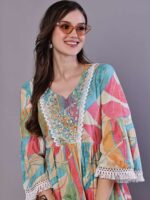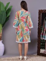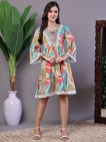 Wome’s Multicolor Printed Cotton A-Line Dress with Embroidered Yoke Midi Dresses