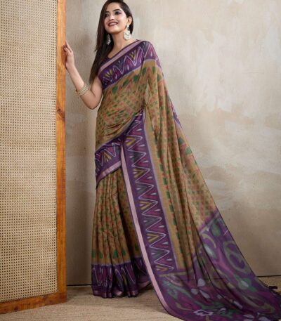 Olive & Purple Ikat Printed Chanderi Saree ? Elegant Festive & Wedding Wear
