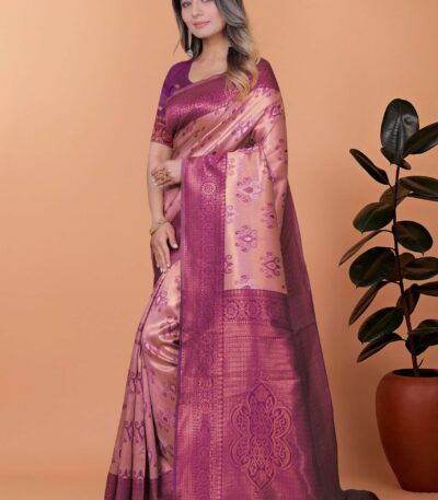 Orchid Glow Banarasi Silk Saree in Lavender-Gold & Plum with Floral Zari Work | Wedding, Festive & Traditional Ethnic Wear