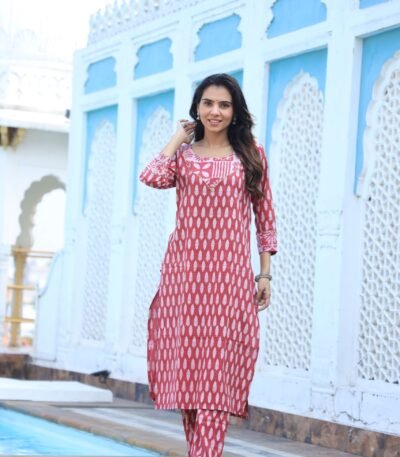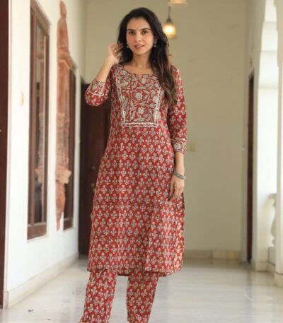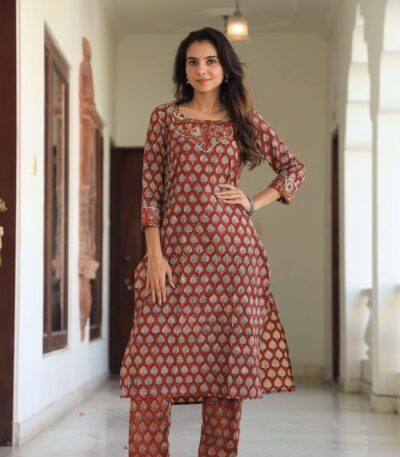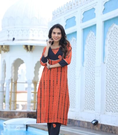 Women?s Orange Cotton Kurta with Black Pants ? Ethnic Casual Wear Set
