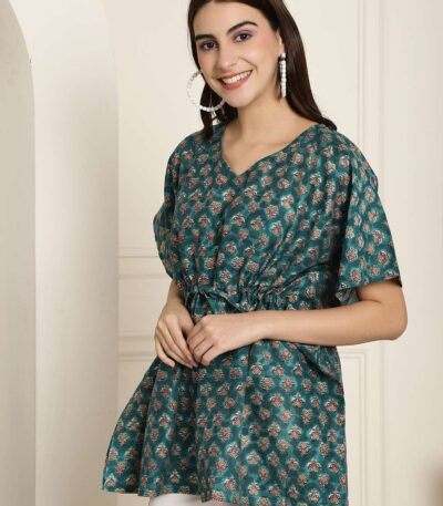 Women’s Chanderi Printed Kaftan Top With Bell Sleeve Dress (Multti Color1)