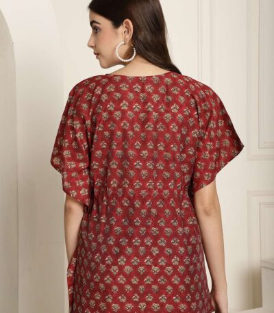 Women’s Chanderi Printed Kaftan Top With Bell Sleeve Dress (Maroon)