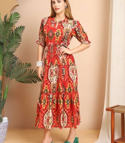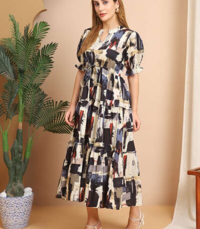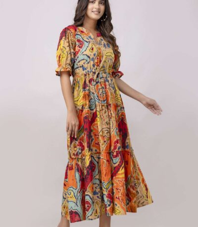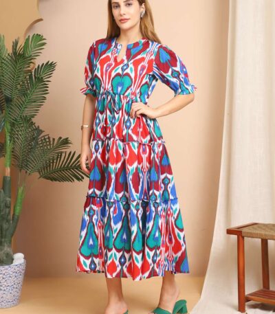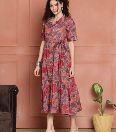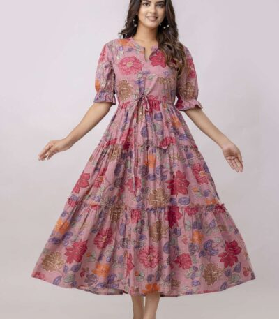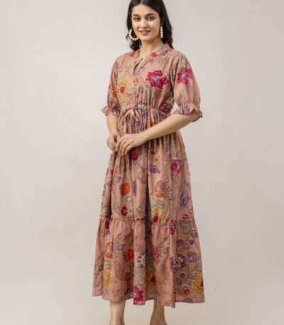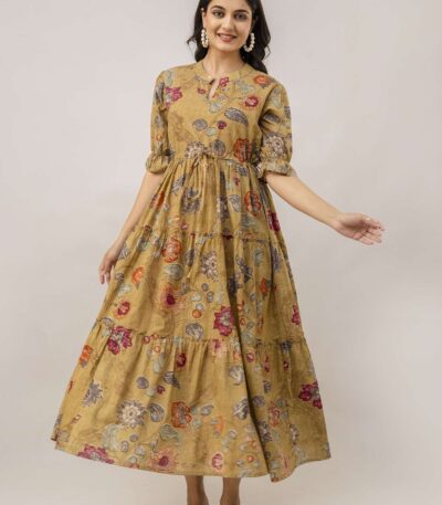 Women’s Cotton Printed Fit & Flare Anarkali Gown Midi Dress