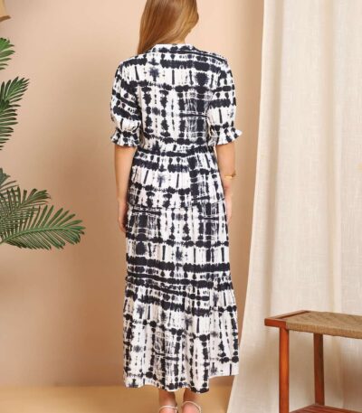 Women’s Cotton Printed A-Line Midi Dress | Short Sleeve Flared Gown Dress (Navy Blue)